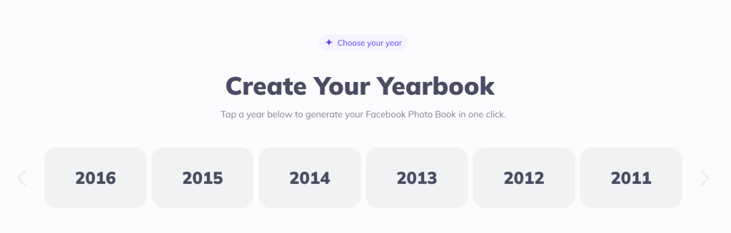 Tap a year below to generate your Facebook Photo Book in one click.