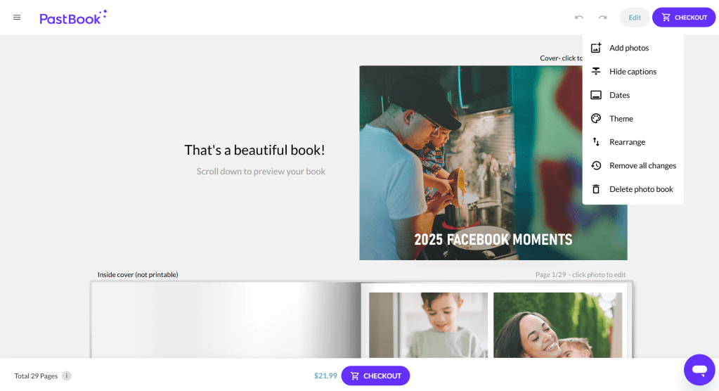From everyday snapshots to life’s biggest milestones, your Facebook memories come together in a timeless yearbook. Designed for you in seconds, ready to order, gift, or keep forever.